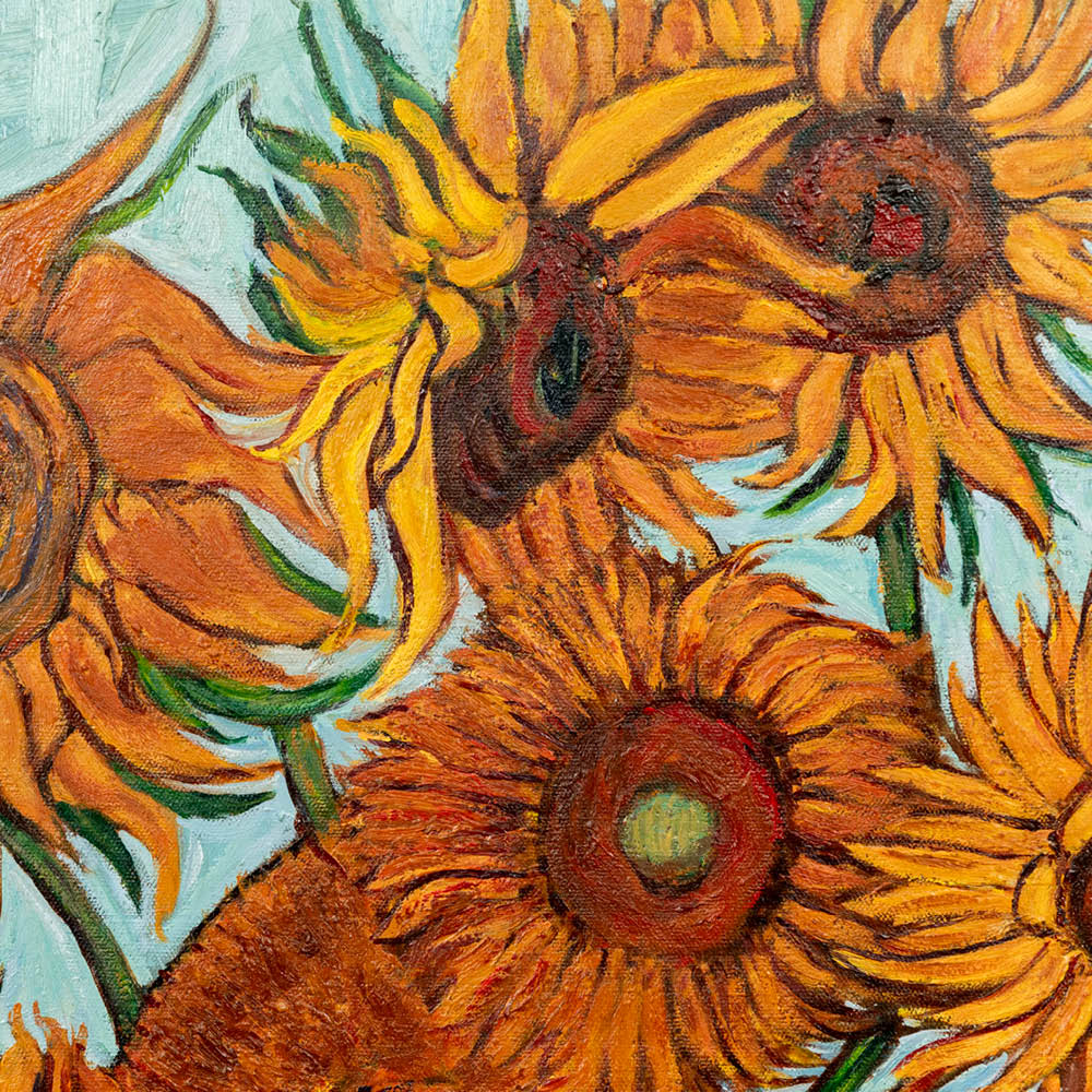 Van Gogh painted a series of Sunflowers. This homage is his third version, the still life with twelve sunflowers.